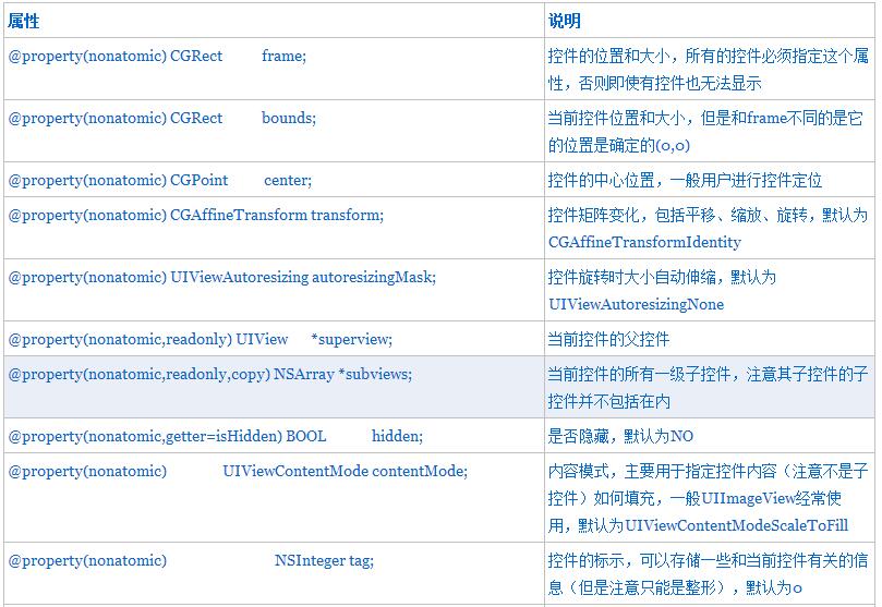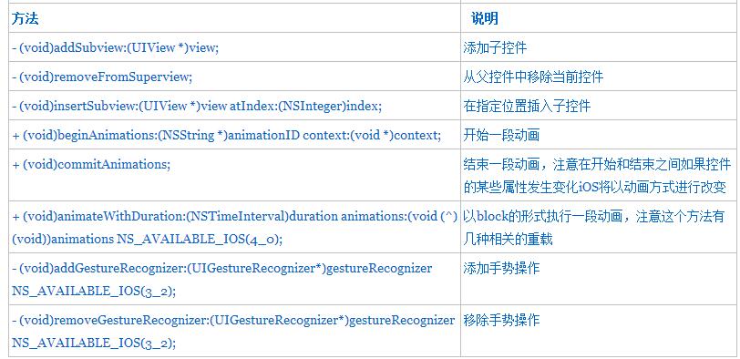 當然UIView的定義文件(.h文件)也是相當長的,我們如果全部截圖也沒有意義。這里列出常用的屬性和方法。
