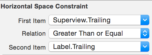 將原來的Equal改為Greater Than Or Equal,注意此時兩個item的順序,不同的順序關系也不同?,F在當文本多的時候label就會自動變高,當文本少的時候label就會自動減小。