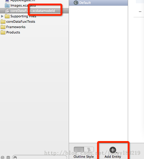 3.如果想創(chuàng)建一個實體對象的話,需要點擊.xcdatamodel,Add Entity,添加想要的字段