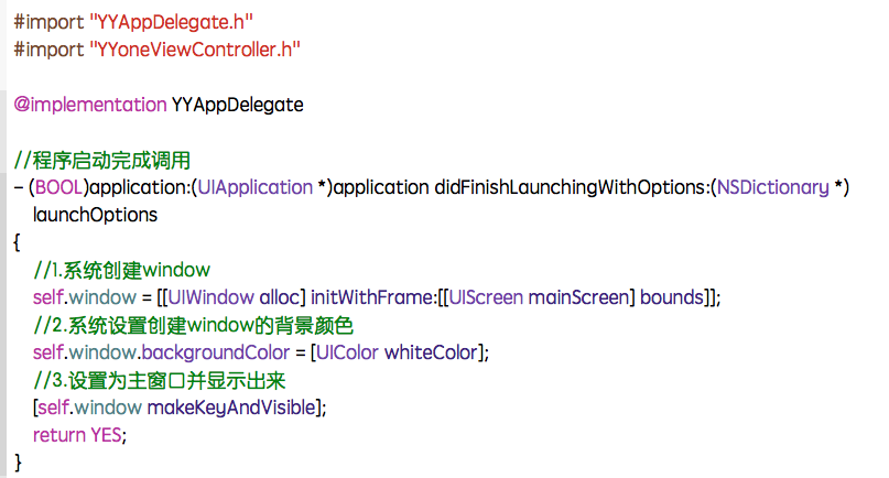 提示:應(yīng)用程序啟動(dòng)之后,先創(chuàng)建Application,再創(chuàng)建它的代理,之后創(chuàng)建UIwindow。UIWindow繼承自UIview。
