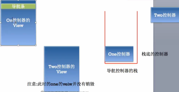 當前one控制器在棧頂,one控制器對應的view顯示在window上,如果此時發生內存警告,那么one因為在window上面,所以不會被銷毀。