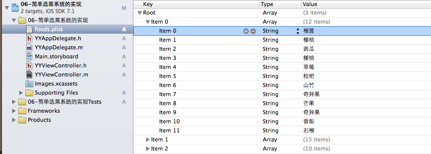 6)缺點(diǎn),將來(lái)數(shù)據(jù)改變之后,會(huì)報(bào)錯(cuò)(模于幾)[self.foods[0] count]?為什么不用簡(jiǎn)寫 點(diǎn)語(yǔ)法?(切記要記住)