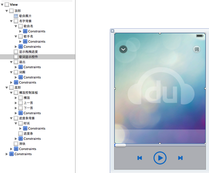 且由于播放界面控制器的布局是固定的,因此這里選擇的方法是使用xib進行創建。