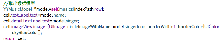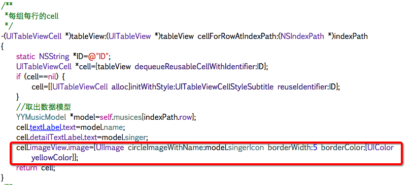 cell.imageView.image=[UIImage circleImageWithName:model.singerIcon borderWidth:1 borderColor:[UIColor skyBlueColor]];