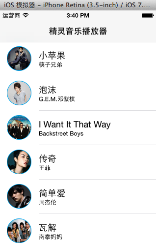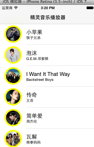 三、音樂文件列表控制器中基本界面的搭建