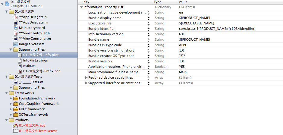 (1)XXXinfo.plist文件(在該項目中為 01-常見文件-Info.plist)