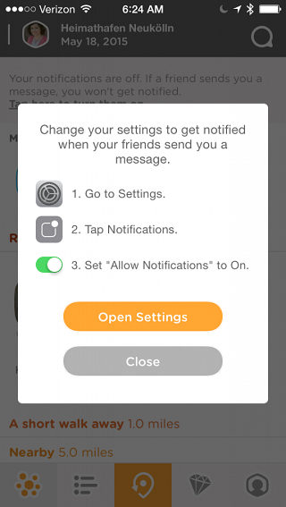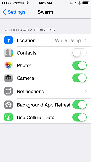 if let appSettings = NSURL(string: UIApplicationOpenSettingsURLString) { UIApplication.sharedApplication().openURL(appSettings)}當用戶拒絕了授權,這就更像Swarm應用程序了。