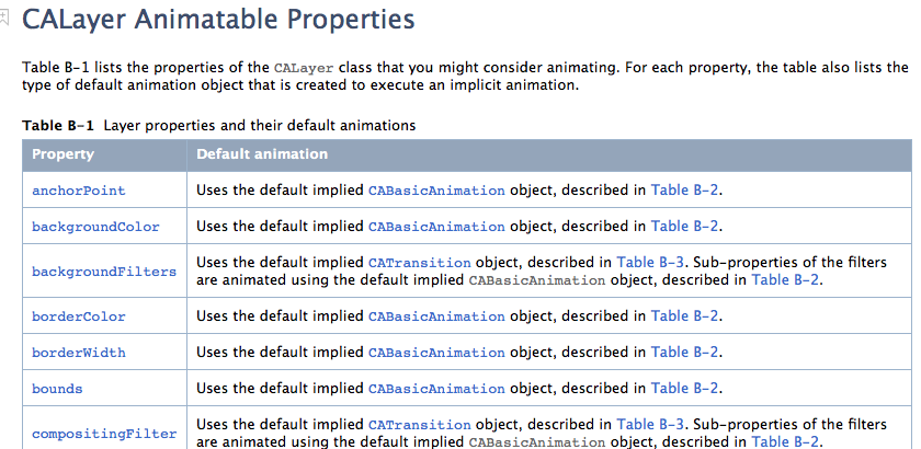 文檔中標明的這些屬性都是支持隱式動畫的