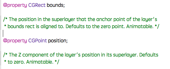 position:用于設置CALayer的位置。修改這個屬性會產生平移動畫
