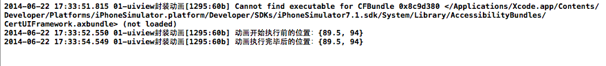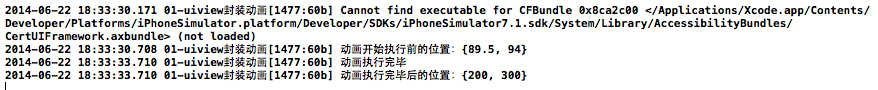 NSLog(@"動畫執行完畢后的位置:%@",NSStringFromCGPoint( self.customView.layer.position));