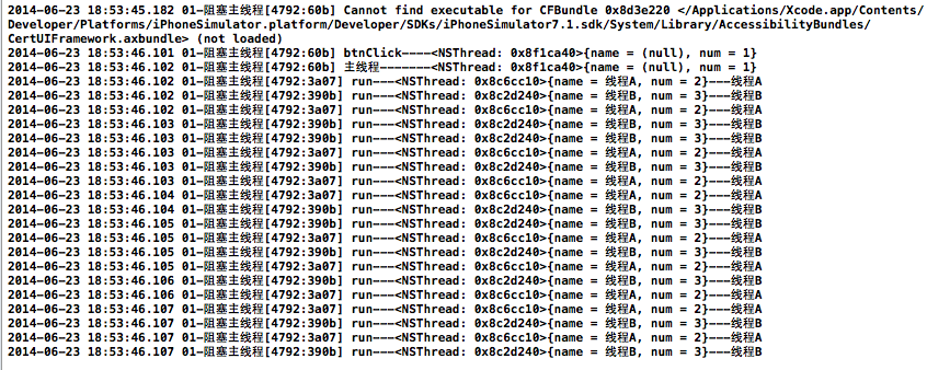 NSThread *thread2=[[NSThread alloc]initWithTarget:self selector:@selector(run:) object:@"線程B"];