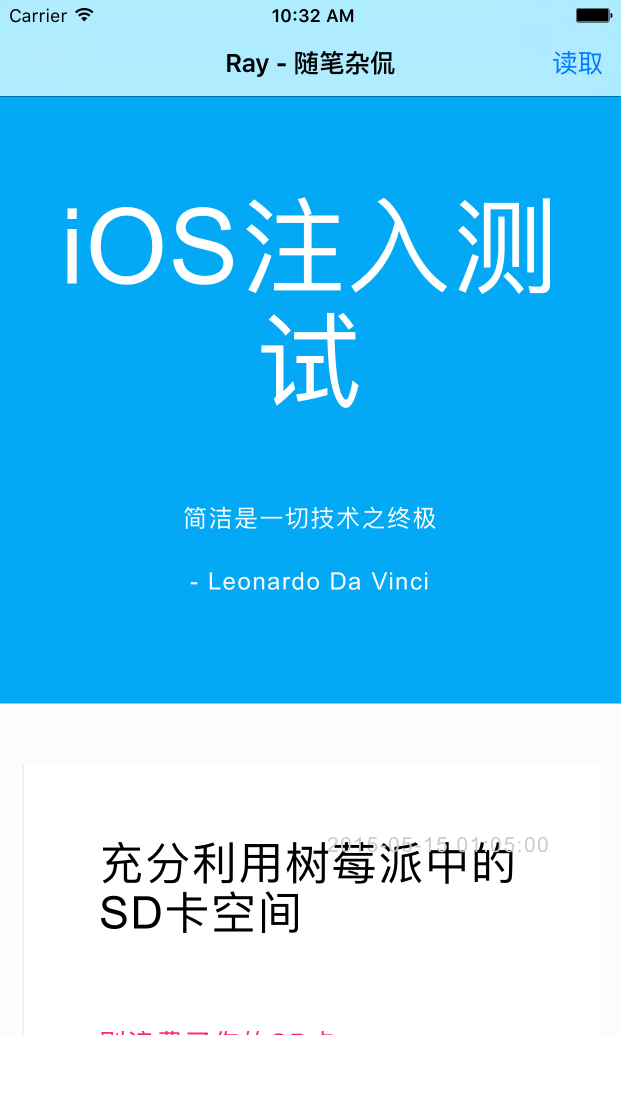 首先我們要準(zhǔn)備一個(gè)目標(biāo)網(wǎng)頁,這里就以我自己的博客來做一個(gè)示例(http://ray.dotnetage.com)。在 App 中用WebKit打開是這樣的