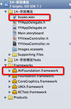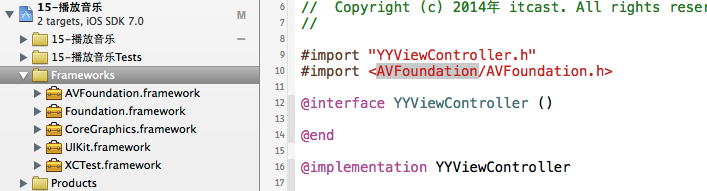 AVAudioPlayer類依賴于AVFoundation框架,因此使用該類必須先導入AVFoundation框架,并包含其頭文件(包含主頭文件即可)。