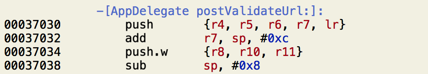 第二行:r7=sp-0xc(指向old R7),之所以減去0xc因為PUSH后,r4,r5,r6占去12個字節;
