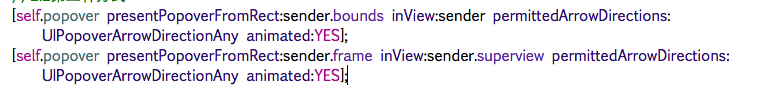 //說明:popover會指向sender.bounds這一塊矩形框,這塊矩形框以sender的左上角為坐標原點