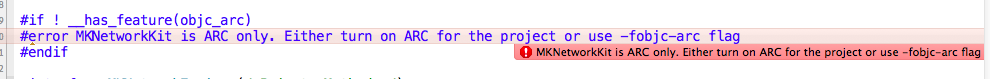注意:由于MKNetworkKit支持ARC,我們在項目中要開啟ARC,不然會報錯