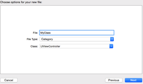 看看這兩個文件怎么實現,在Xcoed上按Command+N,新建文件,選擇Objective-C category方式創建類,這樣Xcode會自動幫你創建約定命名方式的文件。