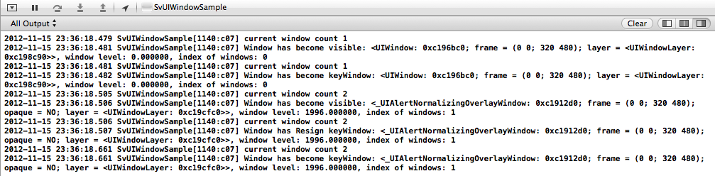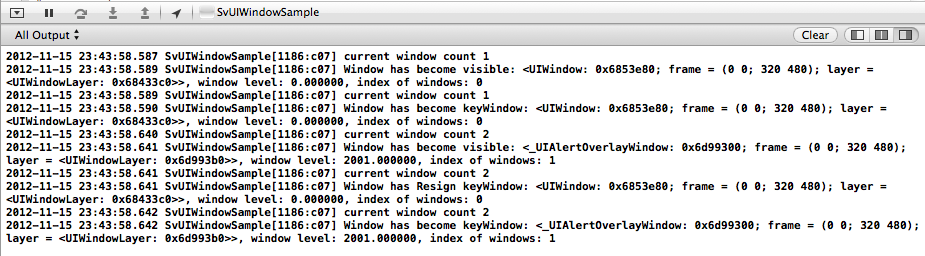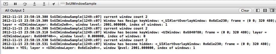 2012-03-27 22:46:08.752 UIViewSample[395:f803] Normal window level: 0.0000002012-03-27 22:46:08.754 UIViewSample[395:f803] Alert window level: 2000.0000002012-03-27 22:46:08.755 UIViewSample[395:f803] Status window level: 1000.000000