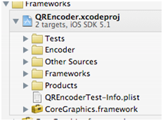 注意:二維碼顯示的時(shí)候有可能會(huì)因?yàn)閳D像的大小而做調(diào)整,所以需要包含系統(tǒng)庫QuartzCore.framework