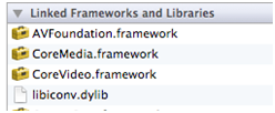 AVFoundation.framwork, CoreMedia.framework, CoreVideo.framework, libiconv.dylib 和libzbar.a (如圖)