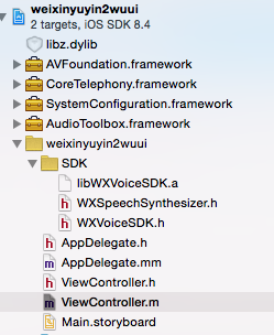 微信只能開發平臺http://pr.weixin.qq.com/,里面包含了微信語音和圖像,集成很簡單,下載方demo后會有個文檔,按照流程來(因為它只提供了真機的.a文件,所以只能用真機哦,不然會報錯)
