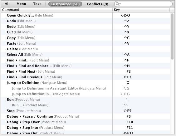 Key Bindings 修改常用快捷鍵,盡量保持和vc/va一致,va的Alt+ <- -> 和 alt+o alt+m 沒(méi)找到,其他常用的,修改如下: