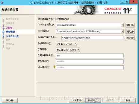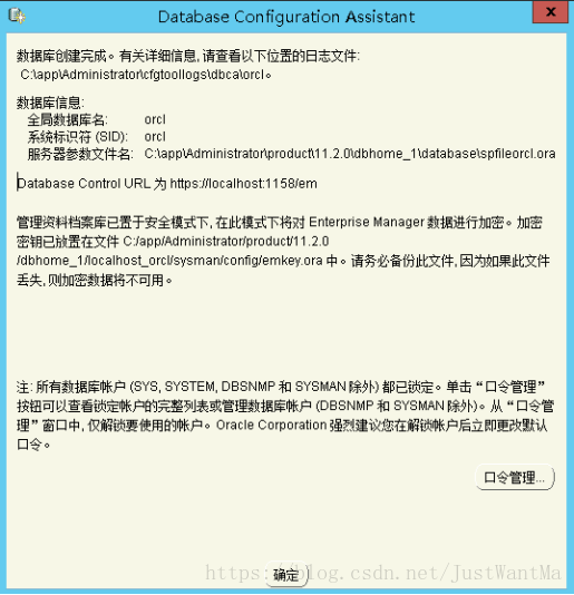 這一步記好設置的口令 ,是之后sys賬戶的口令,不設置的話sys賬戶的默認口令是manager。