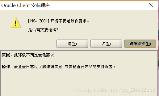 打開安裝包,找到setup.ext,開始安裝。報錯,具體原因和解決辦法和安裝oracle服務(wù)端方法一樣。只是要多修改一個文件,在兩個文件里添加同樣的內(nèi)容即可。具體參考博客:http://m.survivalescaperooms.com/article/170103.htm