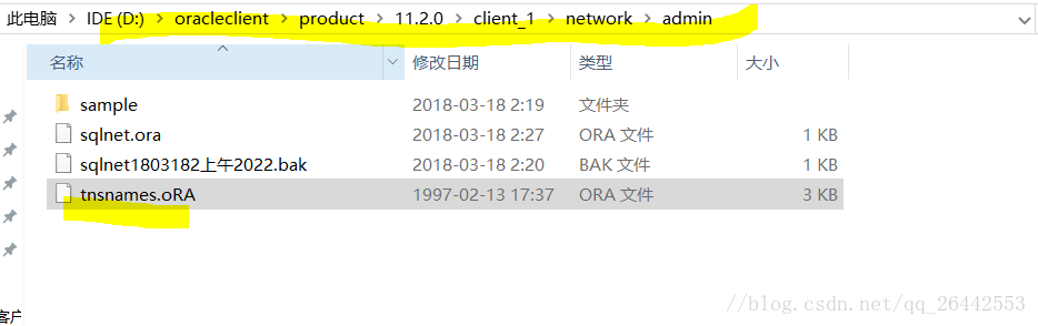 2.在使用plsql連接oracle數(shù)據(jù)庫之前,先要把剛才安裝的oracle客戶端配置一番,打開oracle客戶端安裝目錄,如下目錄