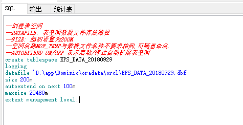 --創(chuàng)建表空間--DATAFILE: 表空間數(shù)據(jù)文件存放路徑--SIZE: 起初設置為200M--空間名稱MOF_TEMP與數(shù)據(jù)文件名稱不要求相同,可隨意命名.--AUTOEXTEND ON/OFF 表示啟動/停止自動擴展表空間create tablespace EPS_DATA_20180929loggingdatafile 'D:/app/Dominic/oradata/orcl/EPS_DATA_20180929.dbf'size 200mautoextend on next 100mmaxsize 20480mextent management local;--創(chuàng)建用戶--用戶名create user FH_20180929--密碼identified by 111default tablespace EPS_DATA_20180929;-- 給權限grant dba to FH_20180929;SELECT * FROM BASE_ORGANIZATION WHERE ORGANIZATION_ID = 1 --查看所有用戶--select * from dba_users; --impdp、expdp創(chuàng)建目錄create or replace directory expdir as 'D:/DBTemp/';grant read,write on directory expdir to public;-- 導入數(shù)據(jù)-- dumpfile 數(shù)據(jù)文件名稱-- logfile 日志文件名稱-- schemas 數(shù)據(jù)對象集合所屬用戶-- remap_schema 當數(shù)據(jù)不同源時,需設置此項-- remap_tablespace 當兩個用戶表空間不一致時,需設置此項-- version 當數(shù)據(jù)庫版本不同時,需設置此項impdp FH_20180929/111@orcl directory=expdir dumpfile=FH_20180710.DMP logfile=FH_20180710.DMP_impdp.log schemas=FENGHUO_20180710 remap_schema=FENGHUO_20180710:FH_20180929 remap_tablespace=EPS_DATA:EPS_DATA_20180929-- 導出數(shù)據(jù)-- dumpfile 數(shù)據(jù)文件名稱-- logfile 日志文件名稱expdp FH_20180929/111@orcl directory=expdir dumpfile=TEST_EXPDP.dmp logfile=TEST_EXPDP.log