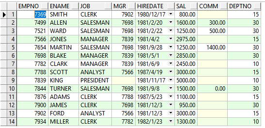 這里實(shí)例中用到的主要是Oracle中scott用戶下的emp以及dept表,數(shù)據(jù)如下