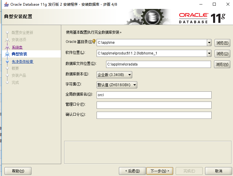 7.典型安裝可以配置數(shù)據(jù)庫安裝位置、登錄口令等信息,口令可以填寫簡單密碼,會有提示但是不影響下一步