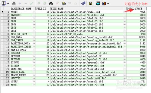 2.查詢用戶的對應的數(shù)據(jù)文件,以及數(shù)據(jù)文件大小
