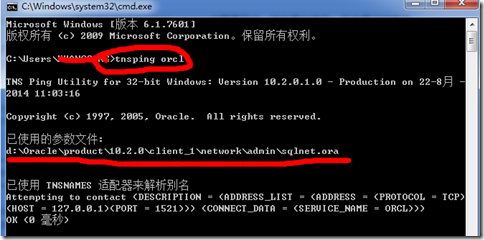 如果在同一臺電腦上面同時安裝了Oracle客戶端和服務端,那么在服務端的安裝目錄中也會存在同樣的配置文件D:/Oracle/product/10.2.0/db_1/NETWORK/ADMIN/tnsnames.ora,在這種情況下如果我們配置好了客戶端Net Manager然后連接Oracle數據庫,可能會出現“ORA-12154: TNS: 無法解析指定的連接標識符”這時,你就應該懷疑,我到底訪問的是哪個路徑下的配置文件呢?此時可以使用tnsping命令