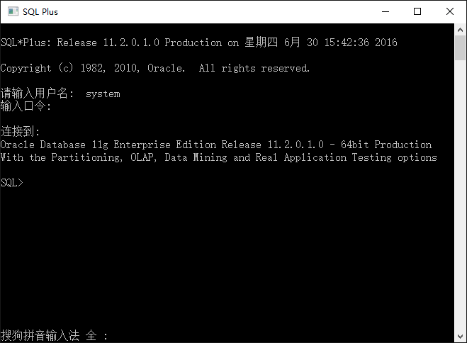 2) 運(yùn)行SQL Plus,通過用戶名/密碼能夠登錄數(shù)據(jù)庫,說明安裝成功