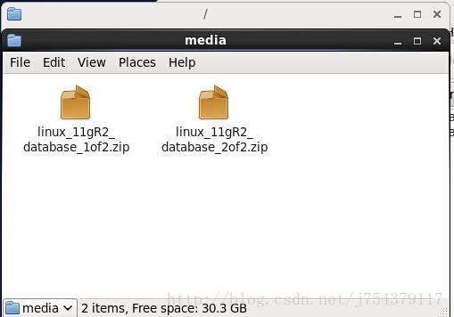 第十二步:將已經下載好的兩個oracle壓縮文件復制到/media文件夾里面,如圖:
