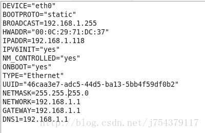 IPADDR=12.168.1.118#(自己手動添加的,必須和外部本地IP同一個網段,即前三位192.168.1和外部本機IP一致)如果設置網卡獲得ip地址的方式為靜態指定,此字段就指定了網卡對應的ip地址
