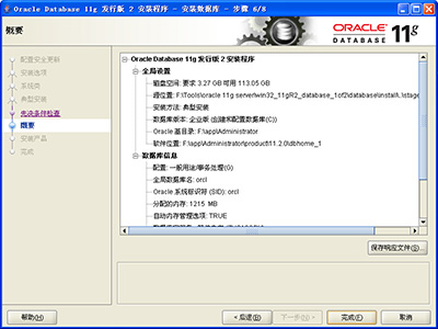10. 概要 安裝前的一些相關選擇配置信息。 可以保存成文件 或 不保存文件直接點完成即可。如圖: