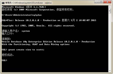 上圖所示的錯誤提示信息已經(jīng)說的很明白了,這是權(quán)限不足導致的!所以,只要我們設(shè)置一個scott用戶的權(quán)限就可以解決了!