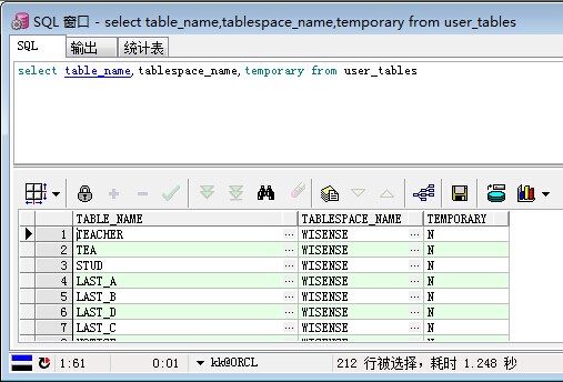 /*查詢所有的表*/select table_name,tablespace_name,temporary from user_tables
