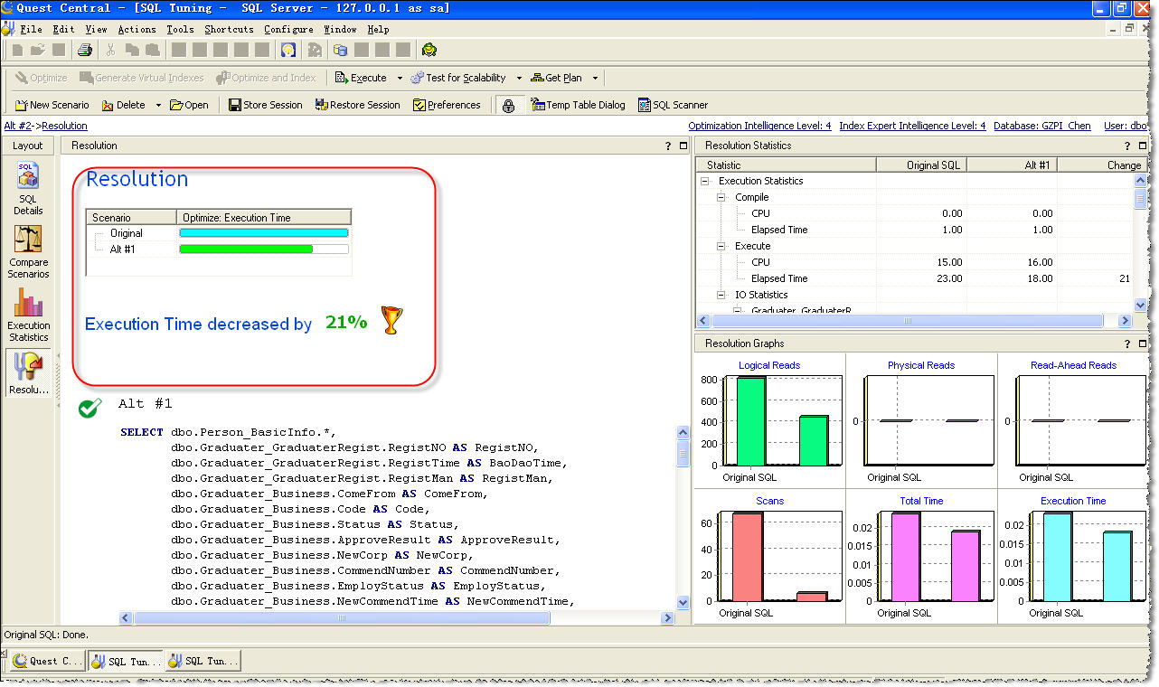 可以看到最優的SQL已經出來啦,運行時間竟然可以提高21%!(圖7)