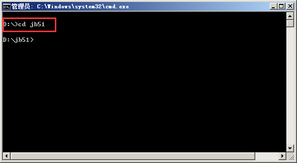 進入D盤根目錄后,在光標處輸入 cd jb51 ;,按Enter就可以進入目標文件夾