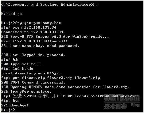 命令行,執行ftp-get-put-many.bat腳本,從執行情況看,flower.zip三個文件都是put的,但在傳輸時,卻只傳了flower2.zip,真不解,有知道的朋友嗎?給點方向