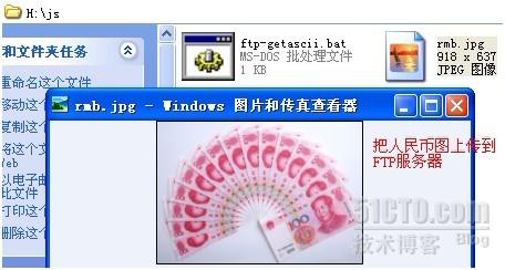 把rmb.jpg放到FTP服務器,大家注意下H:/js目錄下只有ftp-getascii.bat文件