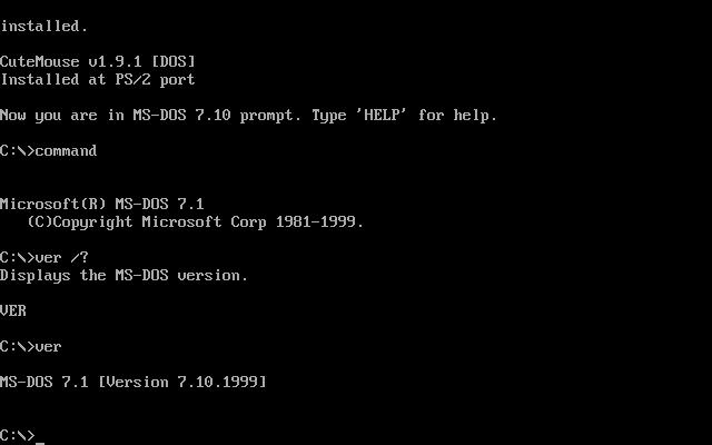MS-DOS 7.10安裝并啟動成功后顯示版本號等信息