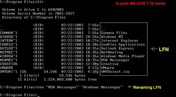 MS-DOS 7.10甚至支持光盤(例如MP3光盤)上的長文件名