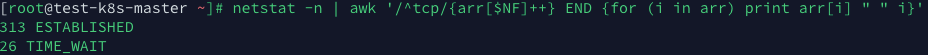對于awk命令整體規(guī)則而言有一個 {} END {} 格式,上述命令分析了TCP協(xié)議下,所有類型連接的總數(shù),可用于分析查看當(dāng)前服務(wù)器連接數(shù)。