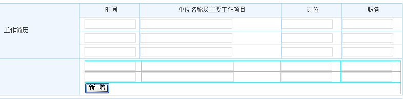 在應(yīng)用程序的開(kāi)發(fā)中,有些輸入信息是動(dòng)態(tài)的,比如我們要注冊(cè)一個(gè)員工的工作經(jīng)歷,比如下圖