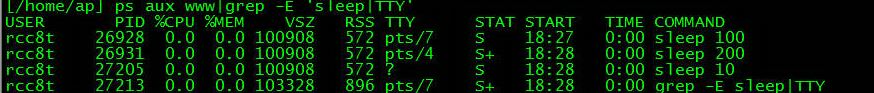 可以看出在前臺的進程狀態為S+,而在后臺的sleep進程狀態都是S