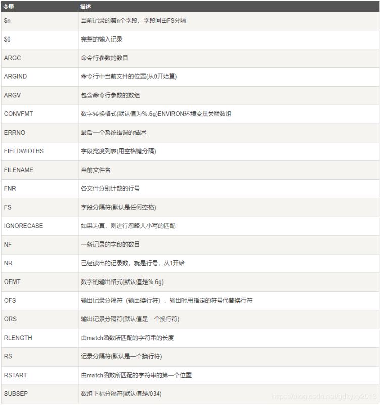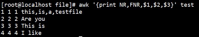 awk '$1>2 && $2=="Are" {print $1,$2,$3}' test四、內建變量